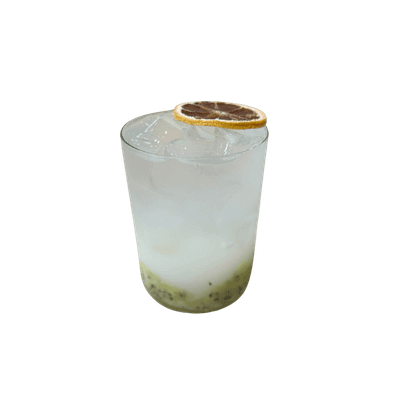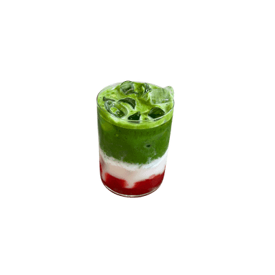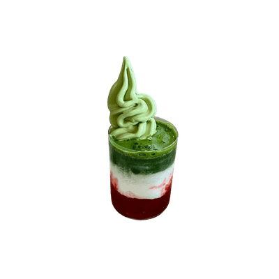 Seasonal fruits, mochi, anko (red bean) + matcha soft serve