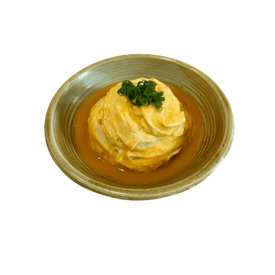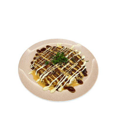 Cabbage omelette, furikake, house sweet bbq sauce + kewpie mayo