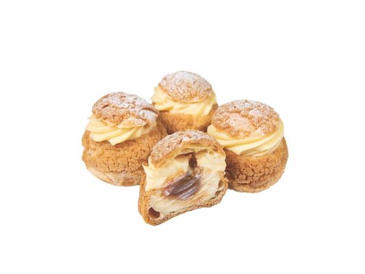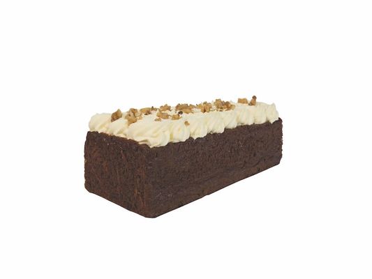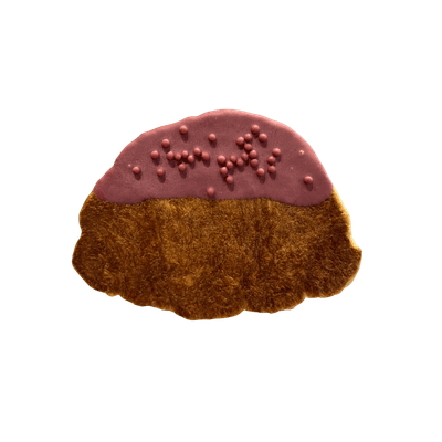 Layers of sponge cake, fresh cream, fresh strawberries + candied almonds